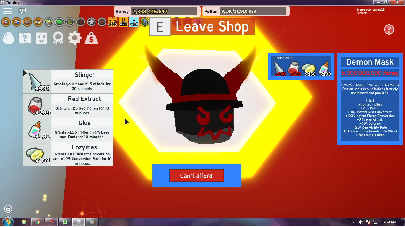 New Special Code From Onett And Buying The Fire Mask Bee Swarm